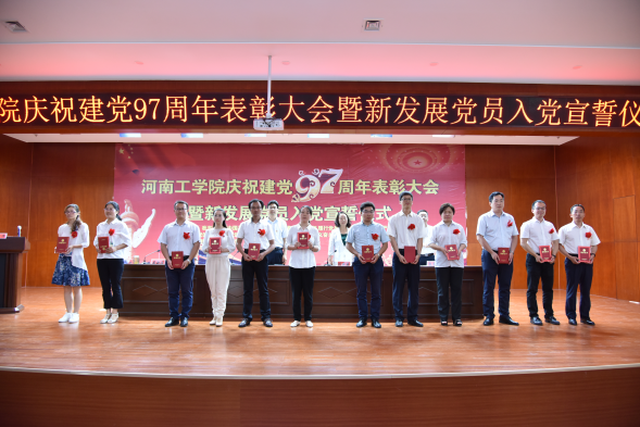 为庆祝中国共产党成立97周年,6月29日下午,我校在创新楼二楼报告厅召开了庆祝建党97周年表彰大会暨新发展党员入党宣誓仪式。在校校领导、全体中层干部、各党支部书记、教工党员代表、受表彰的优秀党员、优秀党务工作者和新发展党员参加了会议。会议由副院长刘莉莉主持。