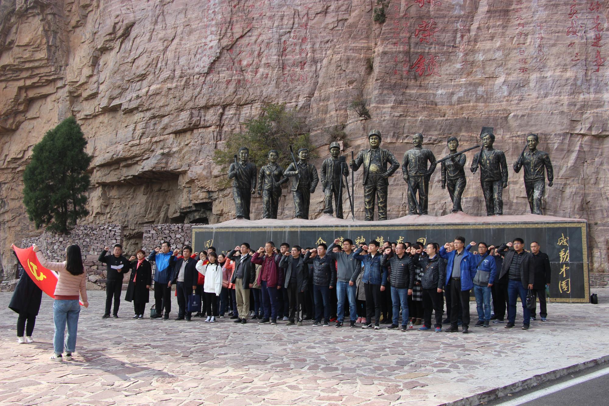 11月9日,全体学员到新乡市先进群体教育基地回龙教学点进行了“传承红色基因、牢记初心使命”主题党日活动。在回龙村,全体学员参观了回龙精神展览室,观看了回龙村发展纪实专题片,聆听了感动中国十大人物、全国优秀共产党员、全国劳动模范、回龙村党支部书记张荣锁的精彩报告;在回龙精神雕塑处,全体学员面对党旗重温了入党誓词;随后,徒步穿越了回龙人在悬崖峭壁上开凿的挂壁隧道,亲身感受到了当年回龙人众志成城,劈山凿洞、云端筑路的艰辛与伟大,更加深刻的感受到了思想上的洗礼和精神上的升华,对一个共产党员的初心和使命有了更深层次的理解。