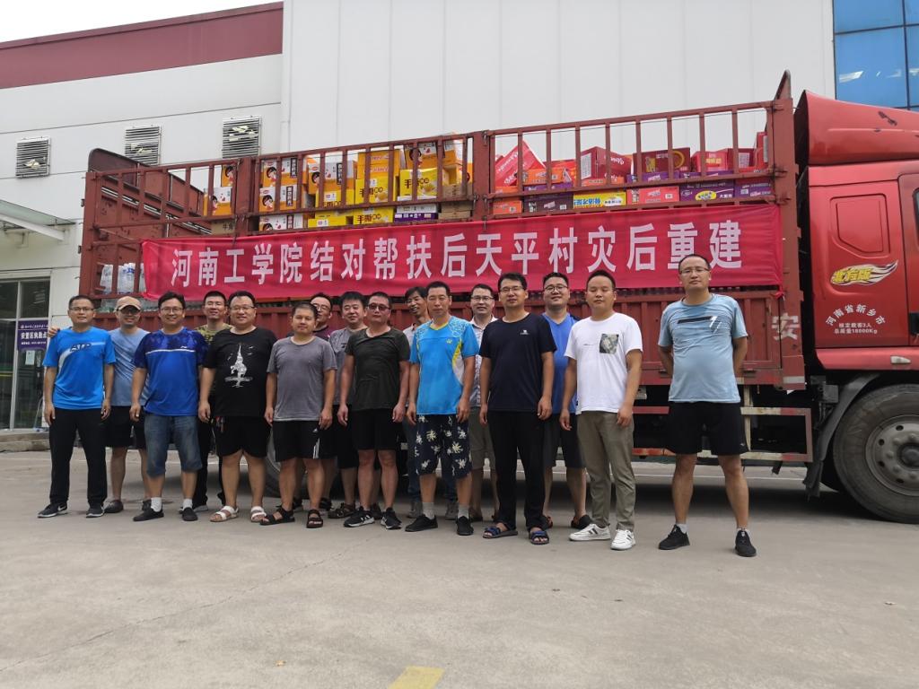 为帮助结对帮扶的受灾村——卫辉市后天平村灾后重建,经校驻村工作组与村领导精准对接,河南工学院积极筹措饮用水、方便食品、防疫物资、消毒消杀物资等救灾物资8余吨。8月7日上午,饱含全校师生员工情谊的救灾物资运抵后天平村。该村的分包联系镇领导、村干部和广大村民对学校的无私援助和驻村工作组的高效工作深表感谢和敬意。校党委组织部负责同志参加了捐赠活动。