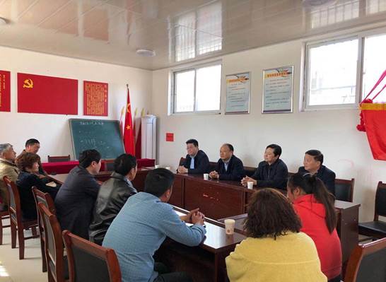 在祝店村村委会,校领导戚新波、樊羁光一行听取了驻村第一书记赵可斌近阶段驻村工作汇报,详细了解了困难群众收入、产业扶贫、项目推进及政策落实等情况,并就下一步乡村振兴、产业结合提升方面同祝店村新一届两委进行了深入沟通交流。