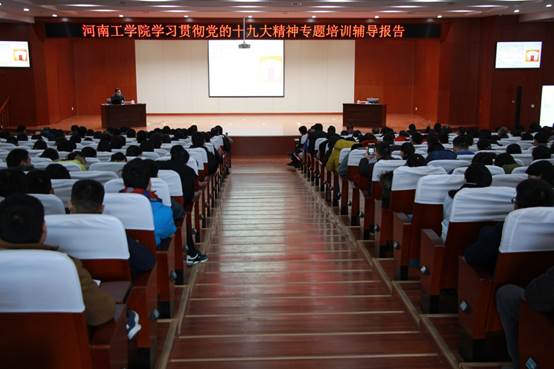 为深入学习贯彻党的十九大精神,把全校广大党员、干部和教职员工的思想和行动统一到党的十九大精神上来,促进十九大精神真正落地生根,凝心聚力开创我校事业发展新局面,根据校学习贯彻党的十九大精神专题培训日程安排,12月21日下午,我校邀请河南省中共党史人物研究会副会长、省纪检监察学会特约会员、中共河南省委党校党史研究部主任赵士红教授作了题为《认真学习党章严格遵守党章》专题辅导报告。报告会在创新楼二楼报告厅举行。全体校领导、校长助理,科级以上干部、党支部书记,教工党员代表参加了报告会。报告会由校领导李贵敏主持。