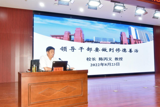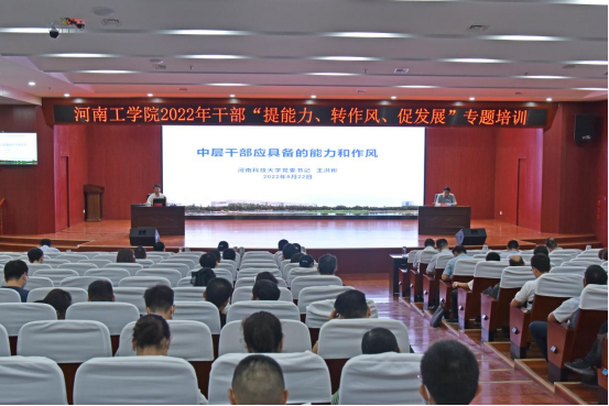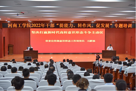 为认真学习贯彻习近平总书记关于教育工作重要论述和党的十九届六中全会精神,着力提升处、科级干部能力素质,扎实推进学校本科教学合格评估工作,为高质量通过合格评估和高水平建设省示范校奠定更加坚实的基础,学校于2022年8月20日——25日在校内举办了为期六天的干部“提能力、转作风、促发展”专题培训。全体校领导和全体处、科级干部参加了本次培训。